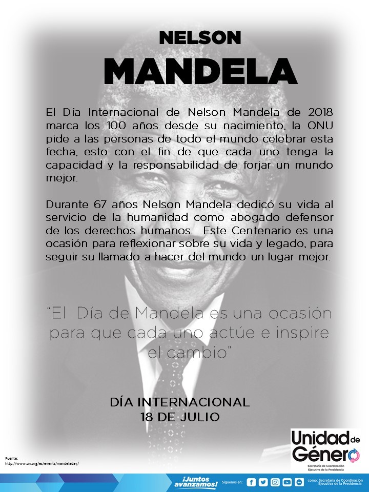 El dia de Mandela es una ocasion para que cada uno actue e inpire el Cambio.