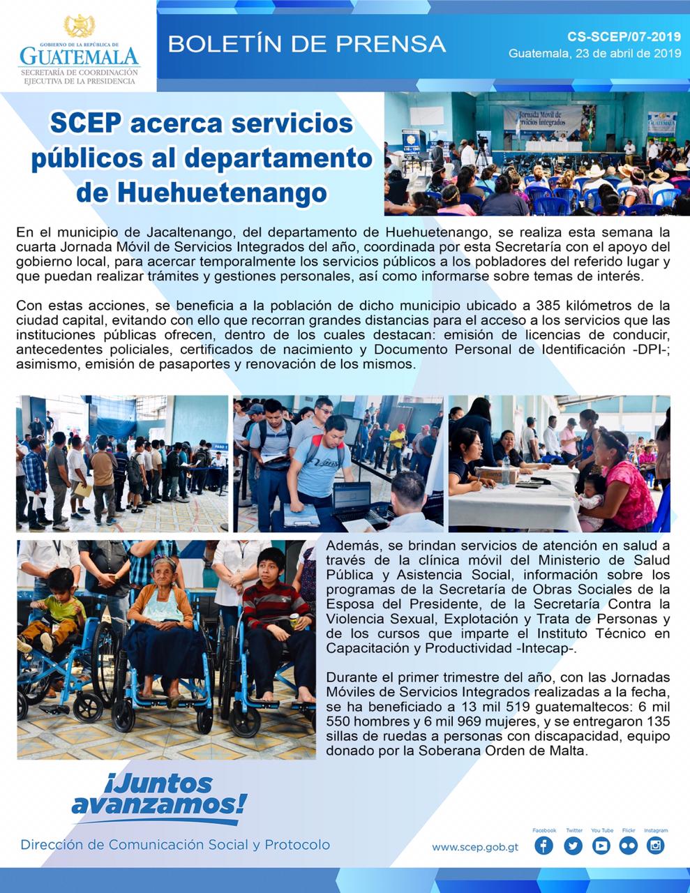 SCEP acerca Servicios Publicos al Departamento de Huehuetenango en el municipio de Jacaltenango, en la cual tubo participacion el Consejo Departamental de Desarrollo Huehuetenango.